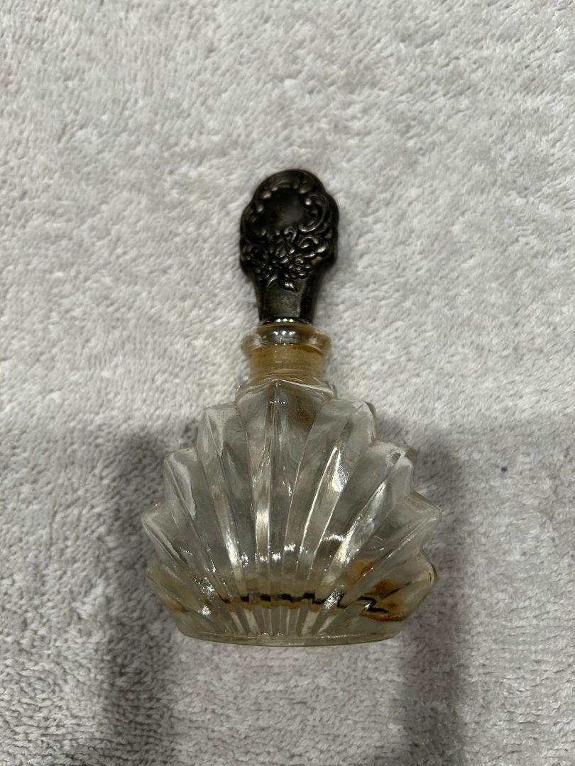 Pressed Glass Fan Shape Design. Ornate Silver Plate Stopper. Ca. 1920's-1930's.
