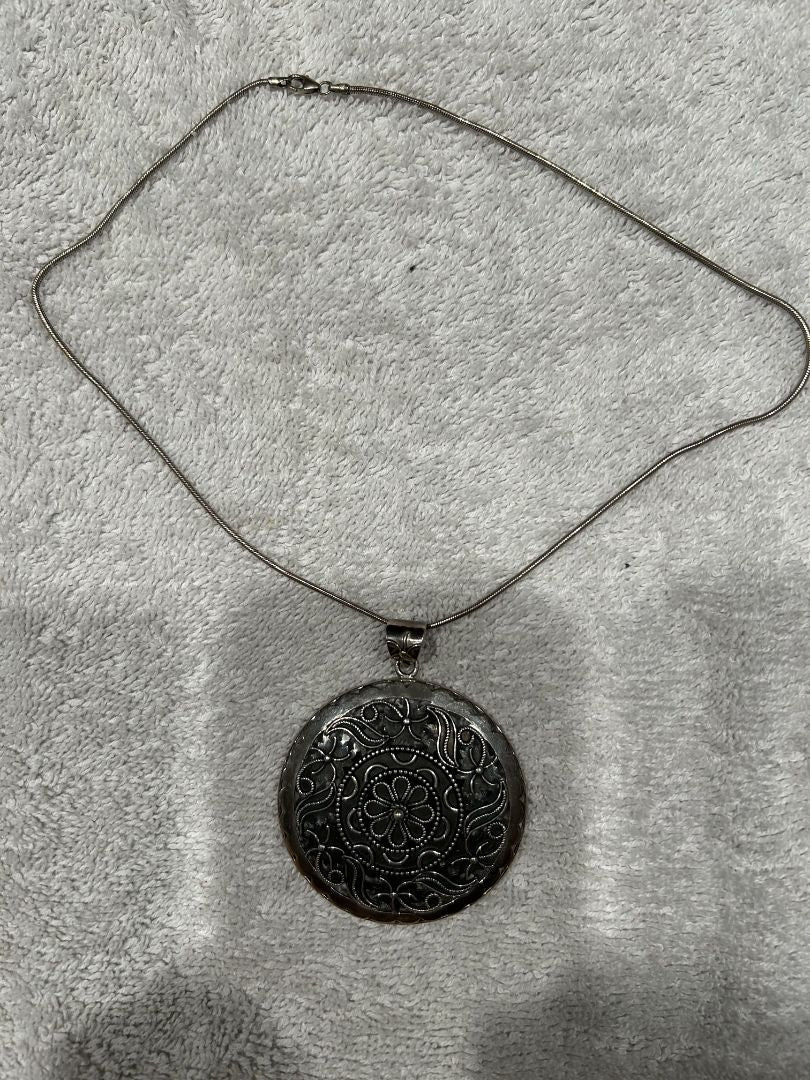 Vintage Sterling Pendent from India by Designer Doug Paulus. Intricate Floral Design. Makers Mark. 17" Silver Chain.
