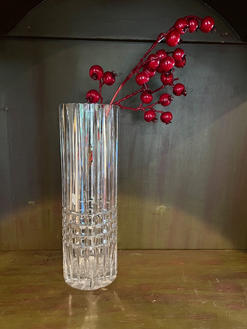 Tall Cut Glass Crystal Vase with Plaid Pattern