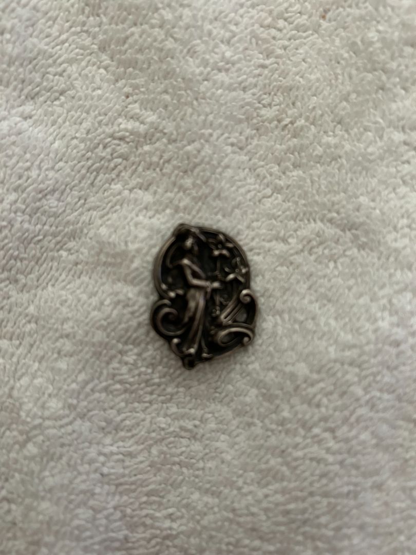 Sterling Silver Tie Tac. Lady in Floral Relief