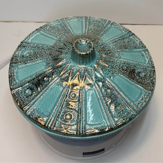 Vintage California Originals Lidded Turquoise & Gold Dish #136 9