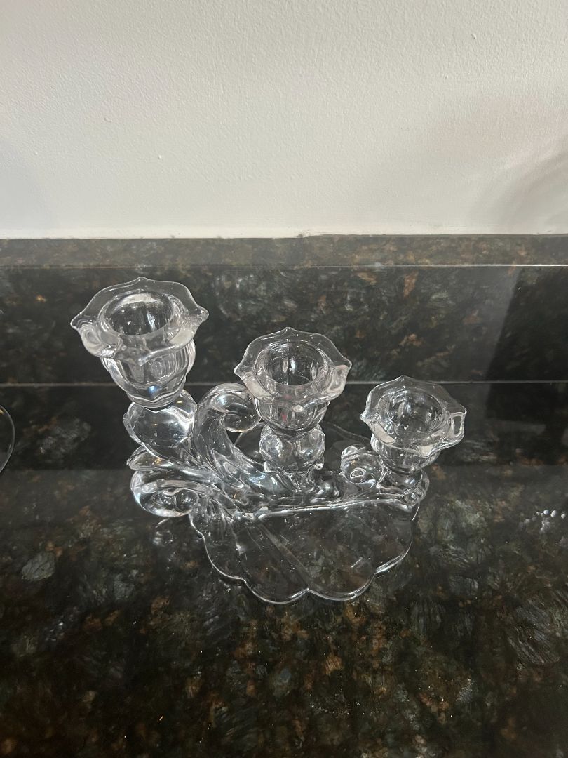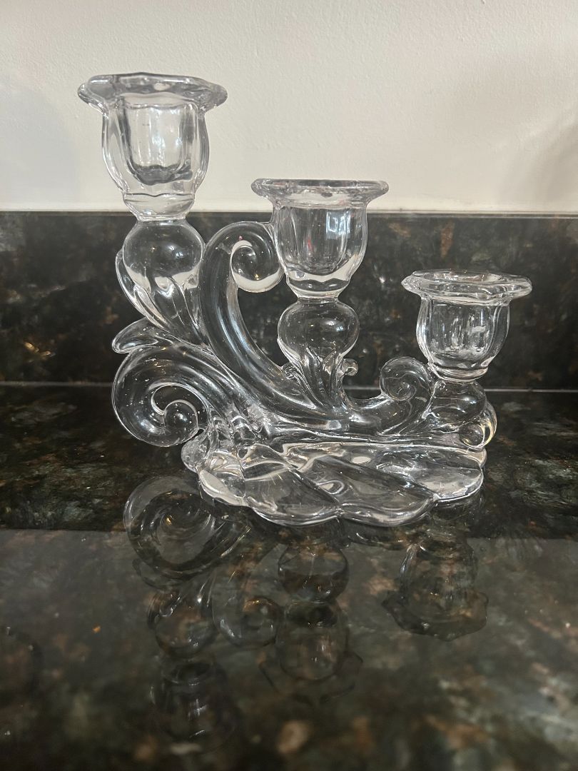 Vintage Cambridge Caprice Triple Candle Holder 6 1/4 X 6 7/8 X 4 3/4