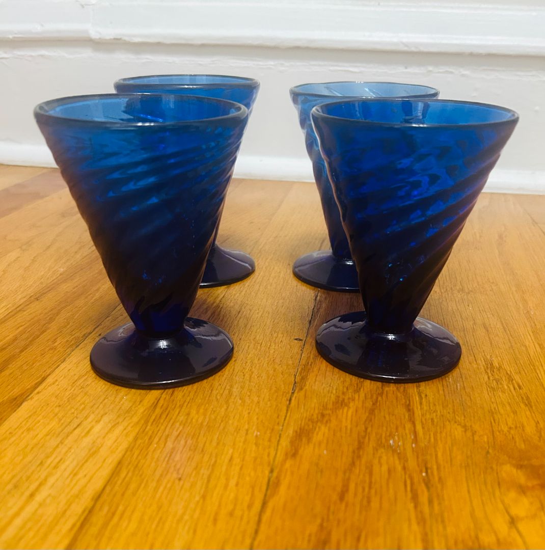 Vintage Cobalt Blue Swirl Cocktail Glass (set of 4) 3"