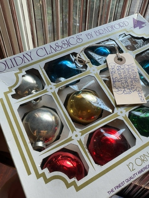 Vintage,glass ornaments Bradford (smaller size) in the box set of 12